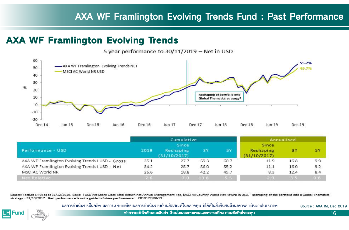ในช่วงปี 2017 มีการเปลี่ยน Theme การลงทุน Global Equity Fund เป็น Evolving Trend ทำให้ผลตอบแทนย้อนหลังในช่วง 3 ปีมีทิศทางที่ดีขึ้น