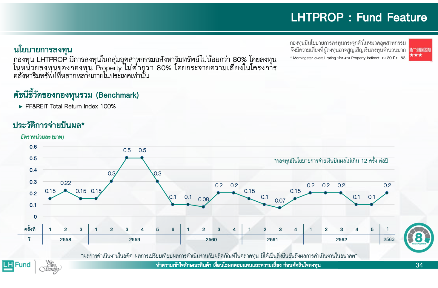 กองทุน LHTPROP มีการจ่ายปันผลสมํ่าเสมอ และกระจายการลงทุนไปในหลายภาคส่วนไม่ใช่แค่ในเฉพาะห้างสรรพสินค้า ในส่วนของโรงแรมทางกองไม่ได้ให้สัดส่วนการลงทุนมาก ผลตอบแทนจึงได้รับผลกระทบน้อยกว่า
