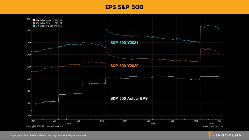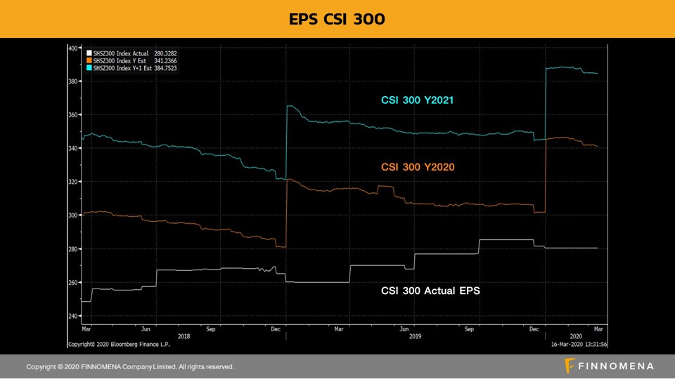 ตัว EPS ที่ถูกคาดการณ์ในอนาคตมีแนวโน้มลดลงถึงแม้ที่ผ่านมาจะเพิ่มขึ้นต่อเนื่อง โดยอาจต้องจับตามอง เพราะ หากเปลี่ยนเป็นแนวโน้มขาลง อาจแสดงถึงความเป็นไปได้ที่ตลาดหุ้นจะปรับตัวลงเช่นกัน (รายได้บริษัทลดลง นักลงทุนขาดความเชื่อมั่น)