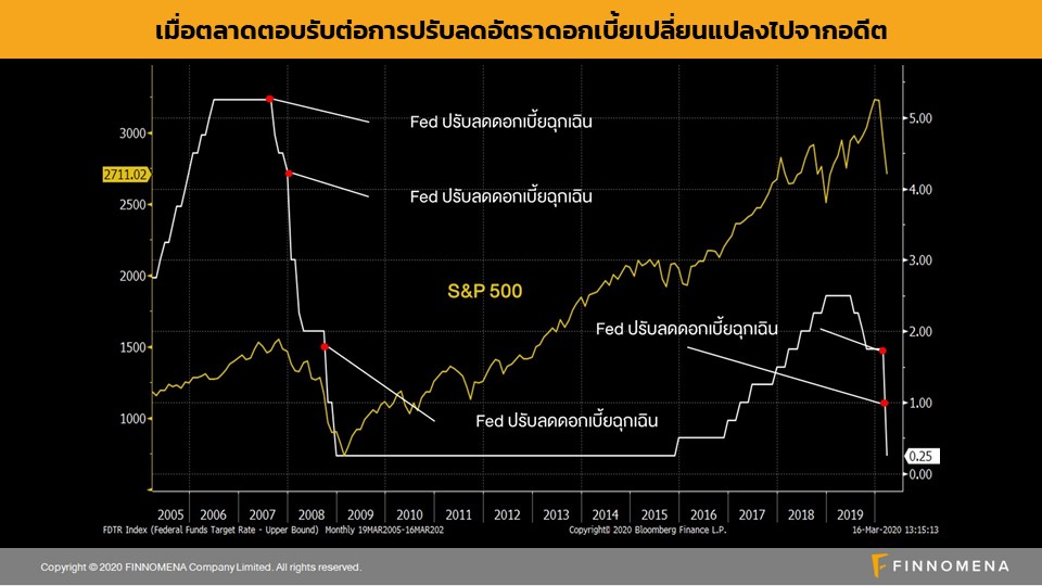 เนื่องมาจาก Fed ลดดอกเบี้ยลงอย่างรวดเร็ว จาก 1.00%-1.25% เป็น 0.00%-0.25% หรือลดลง 1.00% ถ้วนจากปกติที่ลดทีละ 0.25% โดยเป็นการลดแบบฉุกเฉินก่อนการประชุมในช่วงวันพุธถึงพฤหัส