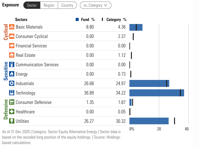 สัดส่วน Sector การลงทุนของกองทุน BGF Sustainable Energy Fund ที่มา: morningstar.com วันที่: 31 ธันวาคม 2020