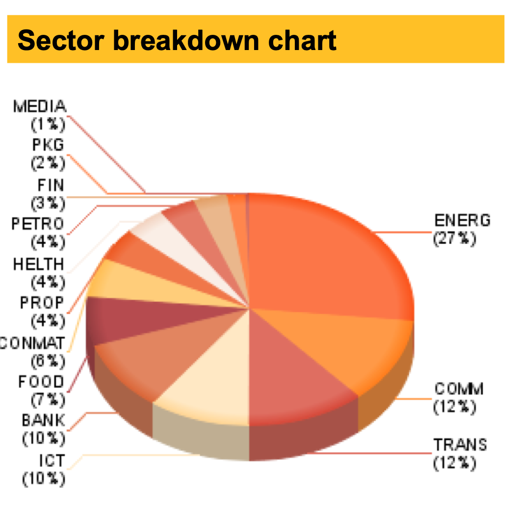 ภาพแสดงสัดส่วน Sector หลักหุ้นไทยจากดัชนี SET 50 ที่เน้นหนักกลุ่มพลังงานมาก ๆ (27%)