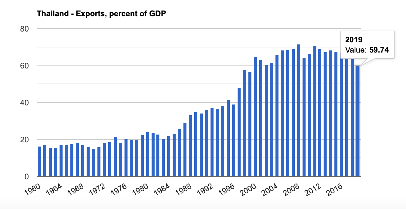 จากข้อมูลในปี 2019 ประเทศไทยพึ่งพาการส่งออกถึง 59.74%!