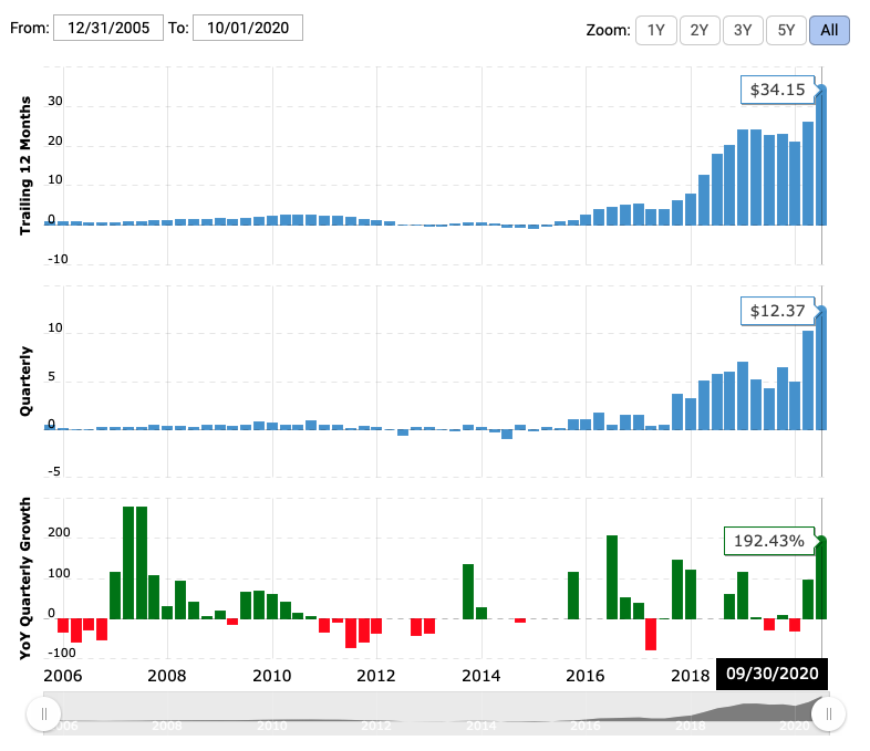 ภาพแสดงกำไรต่อหุ้นของ Amazon ที่ทำได้ถึงหลักสิบ!