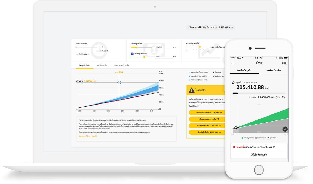 เราช่วยสร้างแผนการลงทุนที่เหมาะสม กับเป้าหมายชีวิตคุณ ไม่ว่าจะเป็นเพื่อการเกษียณ ซื้อรถคันใหม่ หรือเก็บไว้เฉยๆ