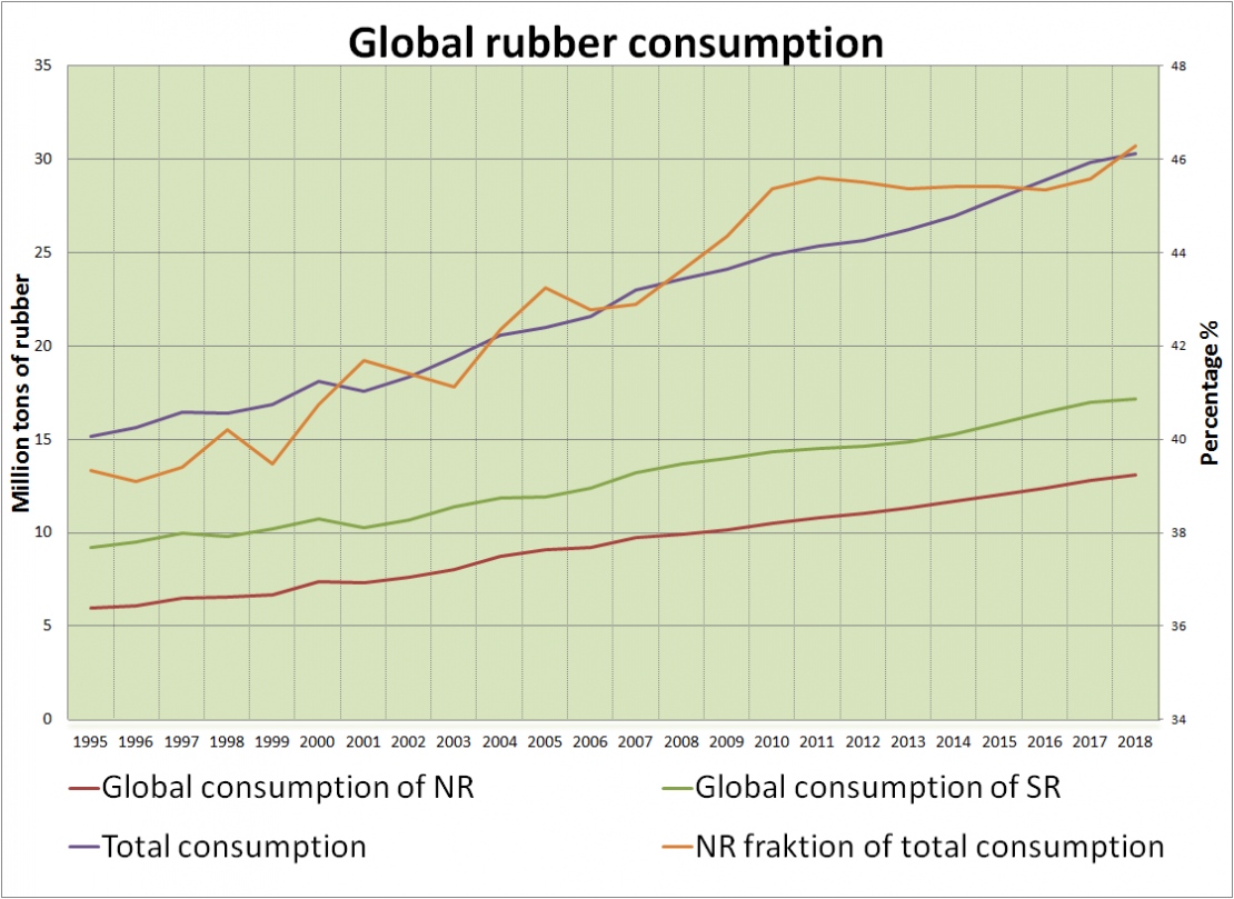 (ภาพแสดงสัดส่วนการใช้ยางธรรมชาติ เปรียบเทียบกับการใช้ยางสังเคราะห์)