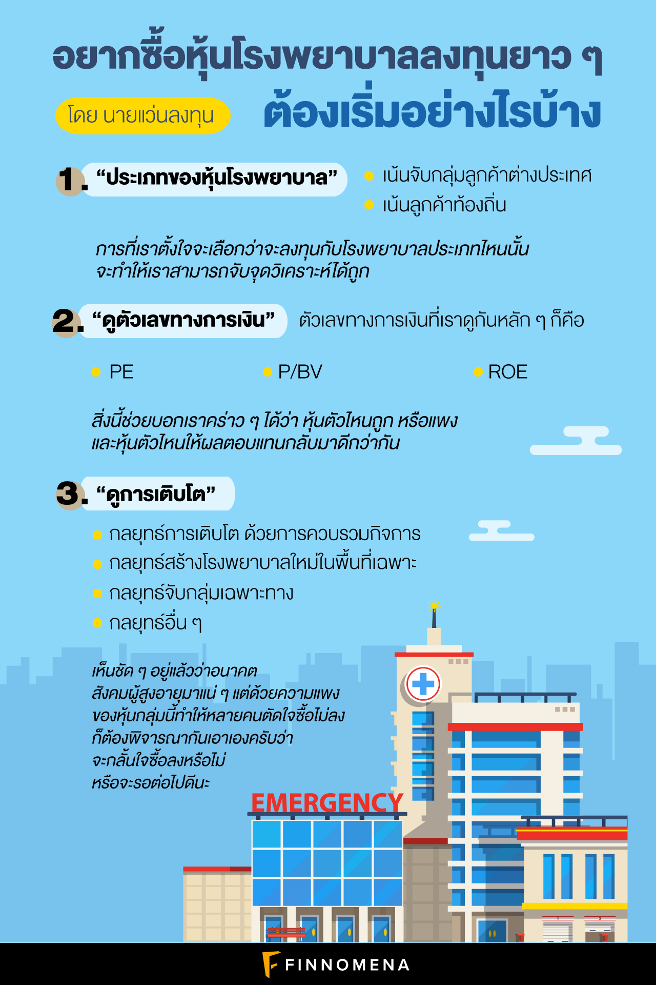 หากเราคิดจะเริ่มต้นลงทุนหุ้นโรงพยาบาล ผมคิดว่าเป็นเรื่องที่น่าสนใจยิ่ง เราก็เห็นชัด ๆ อยู่แล้วว่าอนาคตสังคมผู้สูงอายุมาแน่ ๆ แต่ด้วยความแพงของหุ้นกลุ่มนี้ทำให้หลายคนตัดใจซื้อไม่ลง ก็ต้องพิจารณากันเอาเองครับว่า จะกลั้นใจซื้อลงหรือไม่ หรือจะรอต่อไปดีนะ ลองคิดกันดูนะครับ …
