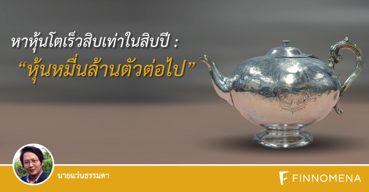 อย่างไรก็ตามประเด็นที่ผมต้องการจะสื่อก็คือ “บริษัทหมื่นล้าน” เหล่านี้ล้วนแต่มีพีอีที่สูงลิ่ว หากดูตัวเลขทางการเงินนักลงทุนแนวเน้นคุณค่าแบบดั้งเดิมจะไม่สนใจหุ้นเหล่านี้เลย ซึ่งบางครั้งเราอาจต้องฉีกตำราด้วยการดูลักษณะการเติบโตของกิจการเป็นหลัก