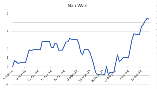 ภาพแรก เป็นผลตอบแทนที่ทางทีมงานฟินโนมีนา ได้ทำไว้ให้ครับ จะเห็นว่าตั้งแต่เปิดพอร์ตในต้นเดือนเมษายน 2562 จนมาถึงปัจจุบันเดือนมิถุนายน 2562 พอร์ต RUNNING For Growth ได้เติบโตขึ้นอย่างมีนัยยะ โดยการเติบโตมาเร่งตัวเอาช่วงเดือนพฤษภาคม 2562 และสามารถทำผลตอบแทนได้ราว 5.36% ในปัจจุบัน
