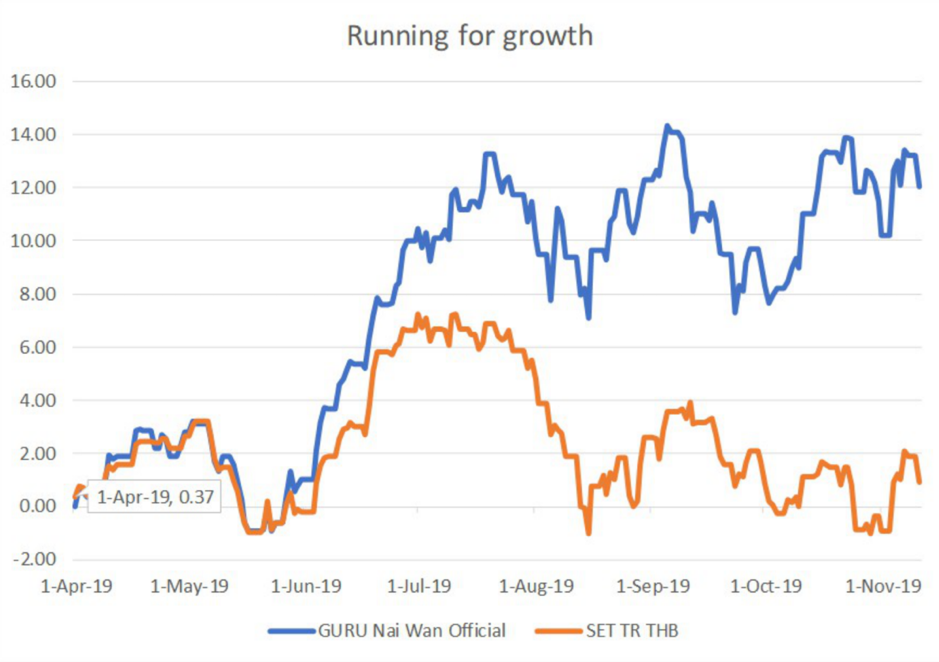 โดยพอร์ต RUNNING for Growth สามารถทำผลตอบแทนได้สูงกว่าตลาดหุ้นไทย จนปัจจุบันผลตอบแทนจากพอร์ตของเราเติบโตสร้างผลตอบแทนได้ราว 12% สามารถชนะตลาดหุ้นไทยที่ทำผลตอบแทนได้ราว 2-3%