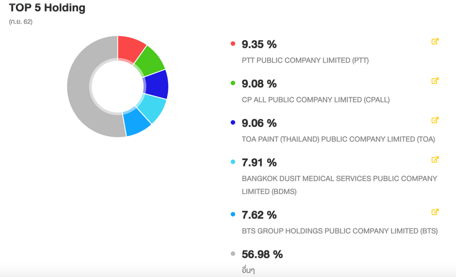 จากภาพจะเห็นว่า … ผลตอบแทนจากการลงทุนของกองทุนนี้ทำได้กว่า 349.42% หรือ 3.5 เท่า ในระยะเวลากว่าสิบปี แม้ผลการดำเนินงานในอดีตไม่ได้บ่งบอกผลการดำเนินงานในอนาคต แต่คาดว่ากองทุนนี้น่าจะสร้างผลตอบแทนที่ดีในอนาคต เนื่องจากการลงทุนของกองทุนนี้ เขาลงทุนในหุ้นที่มีอนาคต โดยมีรายละเอียดดังต่อไปนี้