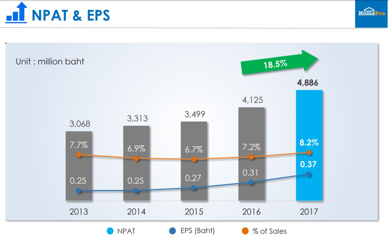 กำไรของ HomePro ปีที่แล้วอยู่ที่ 4,886 ล้านบาท (ที่มา: SET Opp Day 21 มี.ค. 2561)
