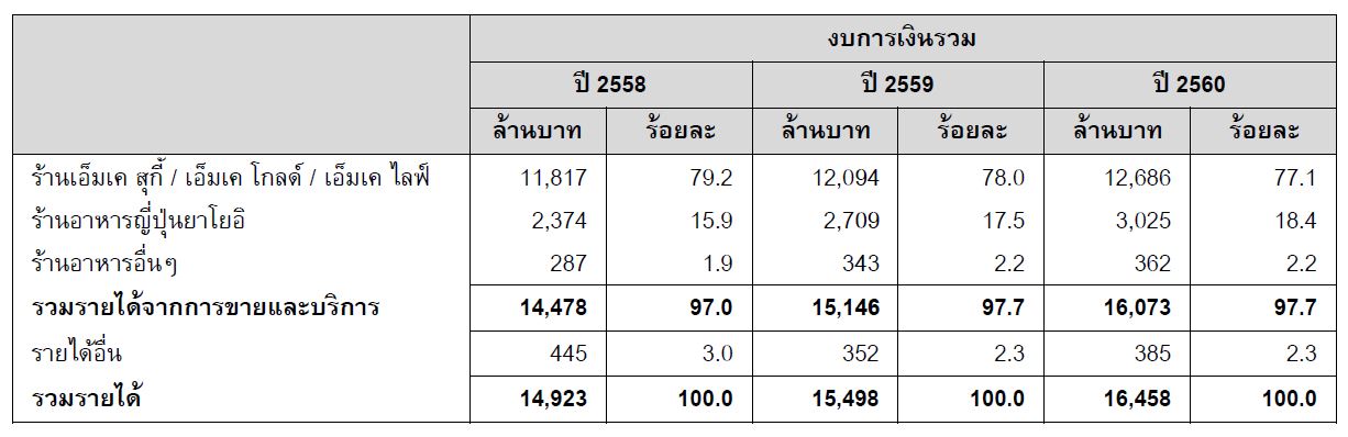 ร้านเอ็มเคสุกี้ถือเป็นร้านอาหารที่สร้างรายได้ให้กับ M มากที่สุดถึง 77% ของรายได้รวม