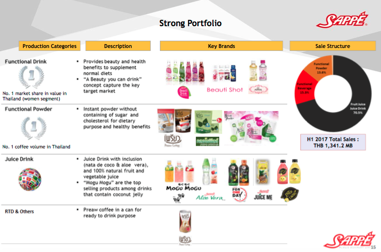 สินค้าของ SAPPE (ที่มา: SET Opp Day, ก.ย. 2560)