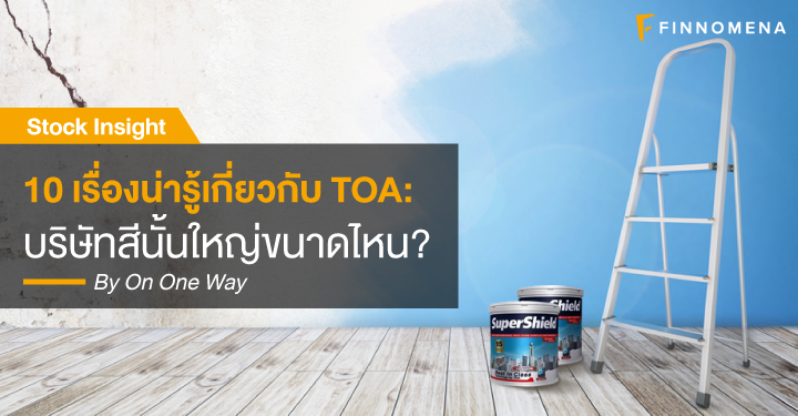 1) TOA หรือ บริษัท ทีโอเอ เพ้นท์ (ประเทศไทย) จำกัด (มหาชน) เป็นบริษัทที่ดำเนินงานมาอย่างยาวนาน โดยเริ่มทำธุรกิจตั้งแต่ปี พ.ศ. 2507 ประกอบธุรกิจผลิตและจำหน่ายผลิตภัณฑ์สีและสารเคลือบผิว มีมูลค่าตลาดที่เกิน 80,000 ล้านบาท
