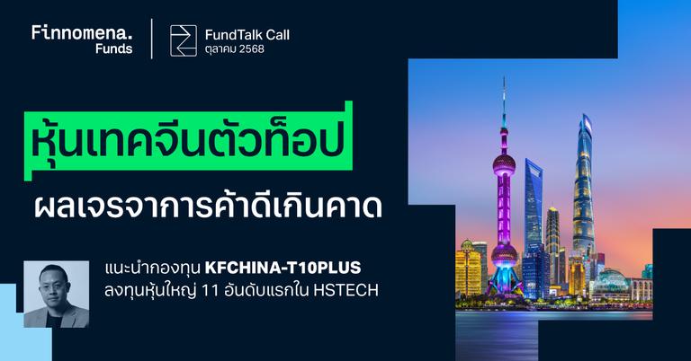 FundTalk Contrarian Call แนะนำกองทุน KFCHINA-T10PLUS-A เน้นลงทุนหุ้นเทคโนโลยีจีน 11 อันดับแรกใน Hang Seng Tech Index ที่มีขนาดใหญ่และมีสภาพคล่อง คาดแนวโน้มฟื้นตัวต่อเนื่อง หลังผลการเจรจากับสหรัฐฯ ออกมาในทางที่ดี