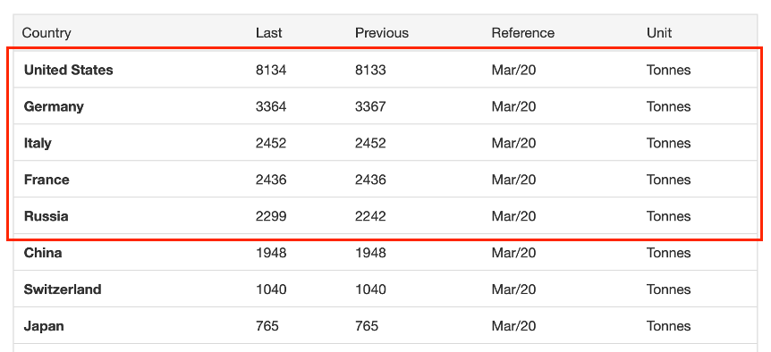 5 ประเทศที่ถือครองทองคำมากที่สุด