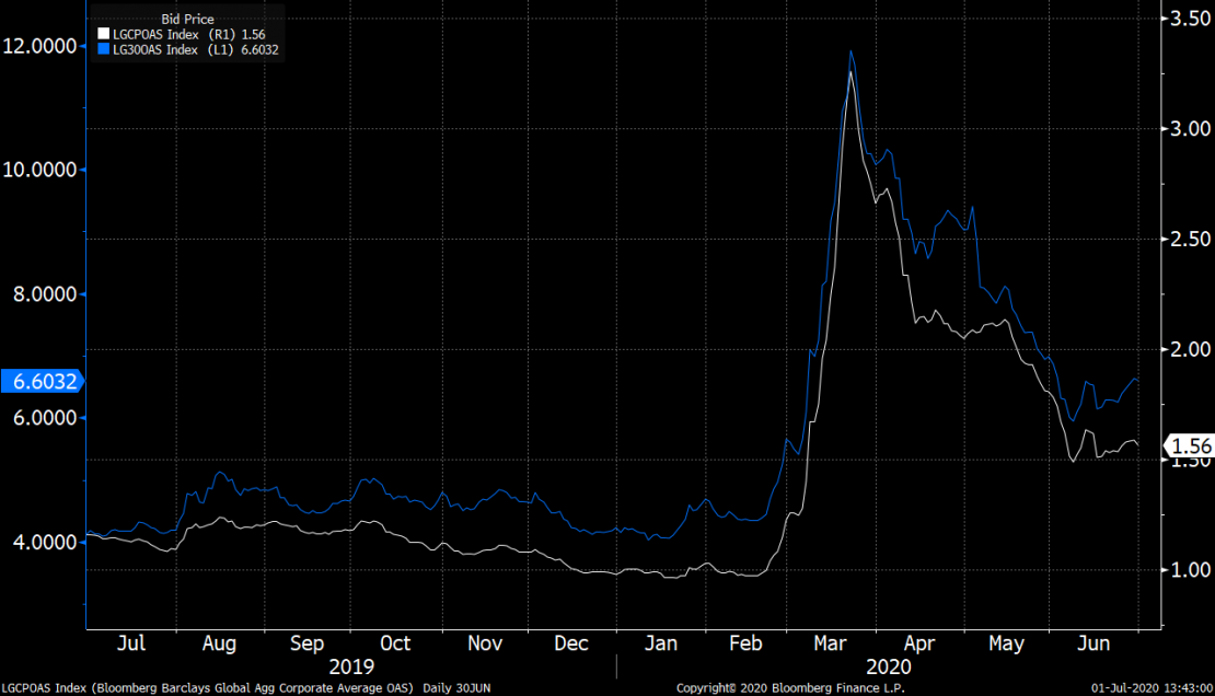Credit Spread (ส่วนต่างความเสี่ยง) ตราสารหนี้ทั่วโลกเกรดลงทุนและเกรดตำ่