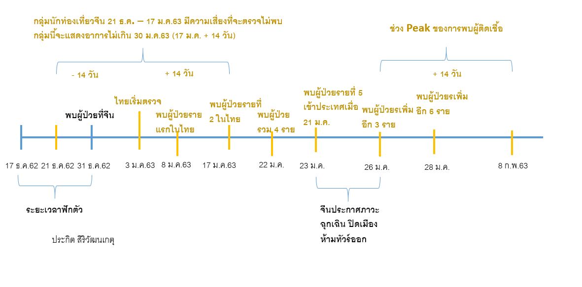 3 ม.ค.63 ไทยเริ่มตรวจที่สนามบิน ซึ่งการตรวจจะเจอเฉพาะคนที่เริ่มมีอาการ เช่น มีไข้สูงเป็นต้น แต่กลุ่มที่มีเชื้อในระหว่างฟักตัวนั้นจะอยู่ในช่วง 21 ธ.ค.62 จนถึง 3 ม.ค.63