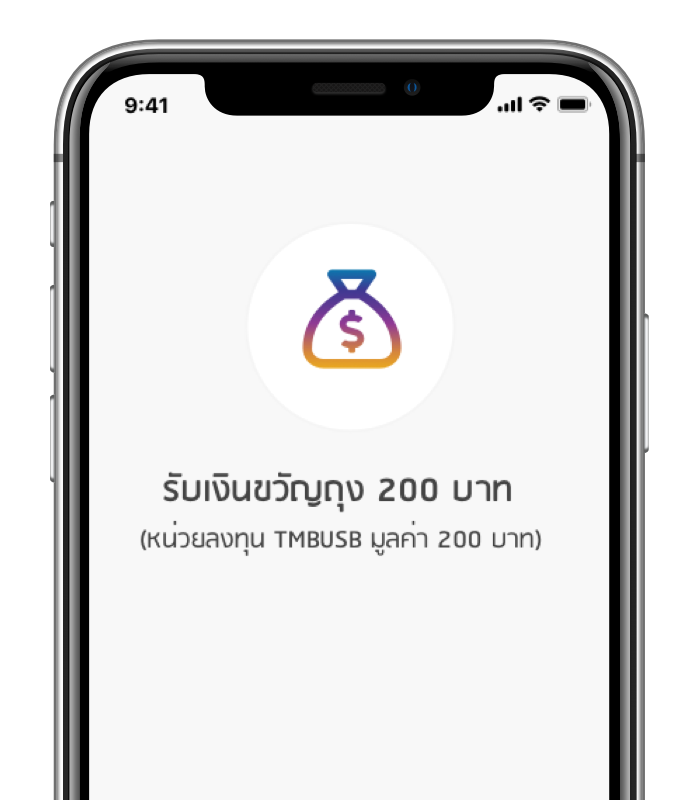 - ในการเข้าร่วมโปรโมชั่นนี้ ผู้รับสิทธิทราบว่าของรางวัลเป็นหน่วยลงทุน TMBUSB และผู้รับสิทธิได้ทำความเข้าใจลักษณะสินค้า เงื่อนไขผลตอบแทนและความเสี่ยงของการลงทุนตามข้อมูล Fund Fact Sheet ของหน่วยลงทุน TMBUSB ดูข้อมูลและ Fund Fact Sheet กองทุน TMBUSB