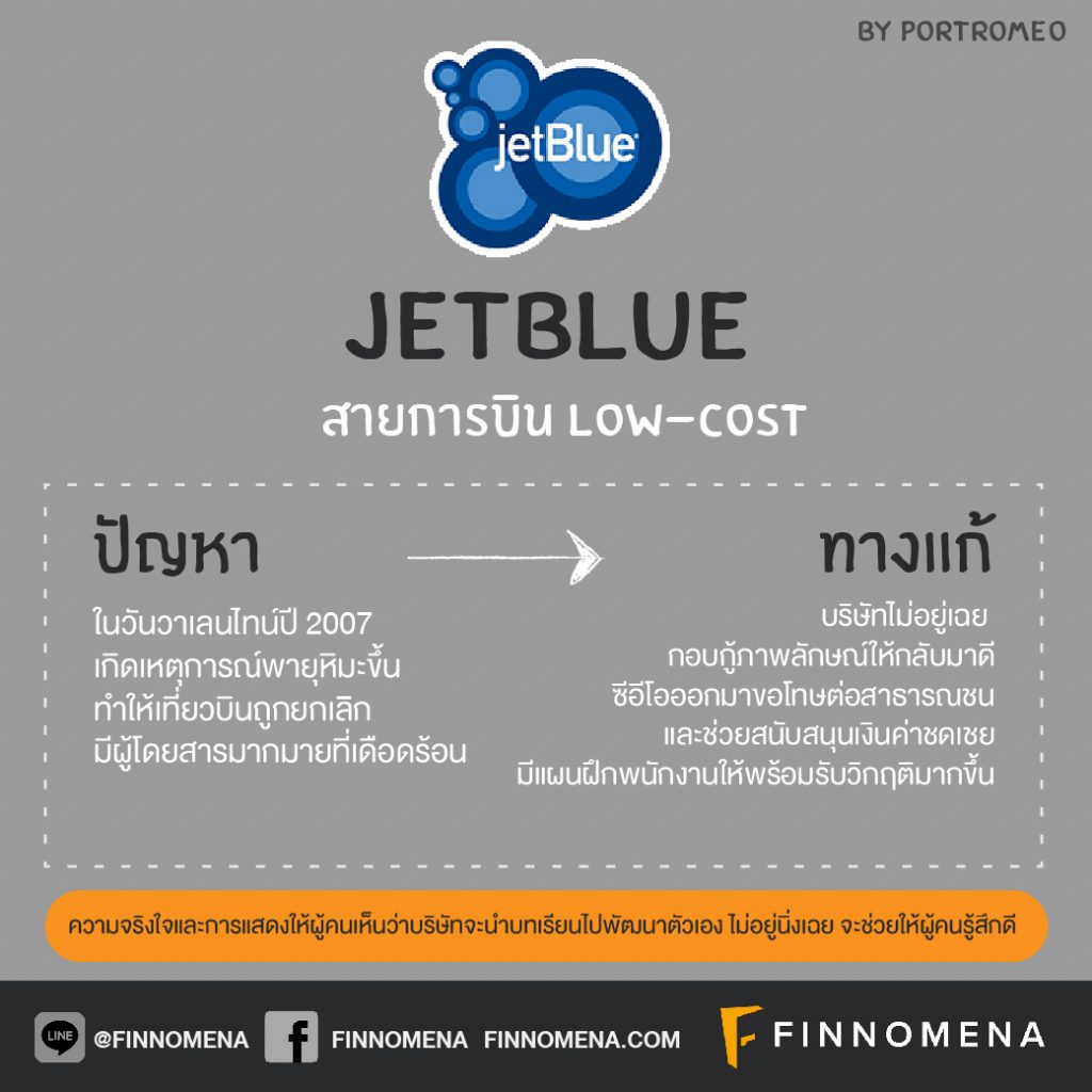 อากาศที่ไม่เป็นใจนั้นสามารถส่งผลกระทบต่อธุรกิจสายการบินได้ JetBlue บริษัทสายการบินราคาถูกสัญชาติอเมริกันก็หนีไม่พ้นปัญหานี้ ในวันวาเลนไทน์ปี 2007 เกิดเหตุการณ์พายุหิมะขึ้นในส่วนตะวันออกเฉียงเหนือของสหรัฐฯ จึงทำให้เที่ยวบินถูกยกเลิก มีผู้โดยสารมากมายที่ถูกทิ้งและต้องติดอยู่ในสนามบิน ทาง David Neeleman ซีอีโอของ JetBlue ในตอนนั้น ยอมรับเลยว่านี่คือช่วงเวลาที่ย่ำแย่ที่สุดในประวัติศาสตร์ 7 ปีของ JetBlue