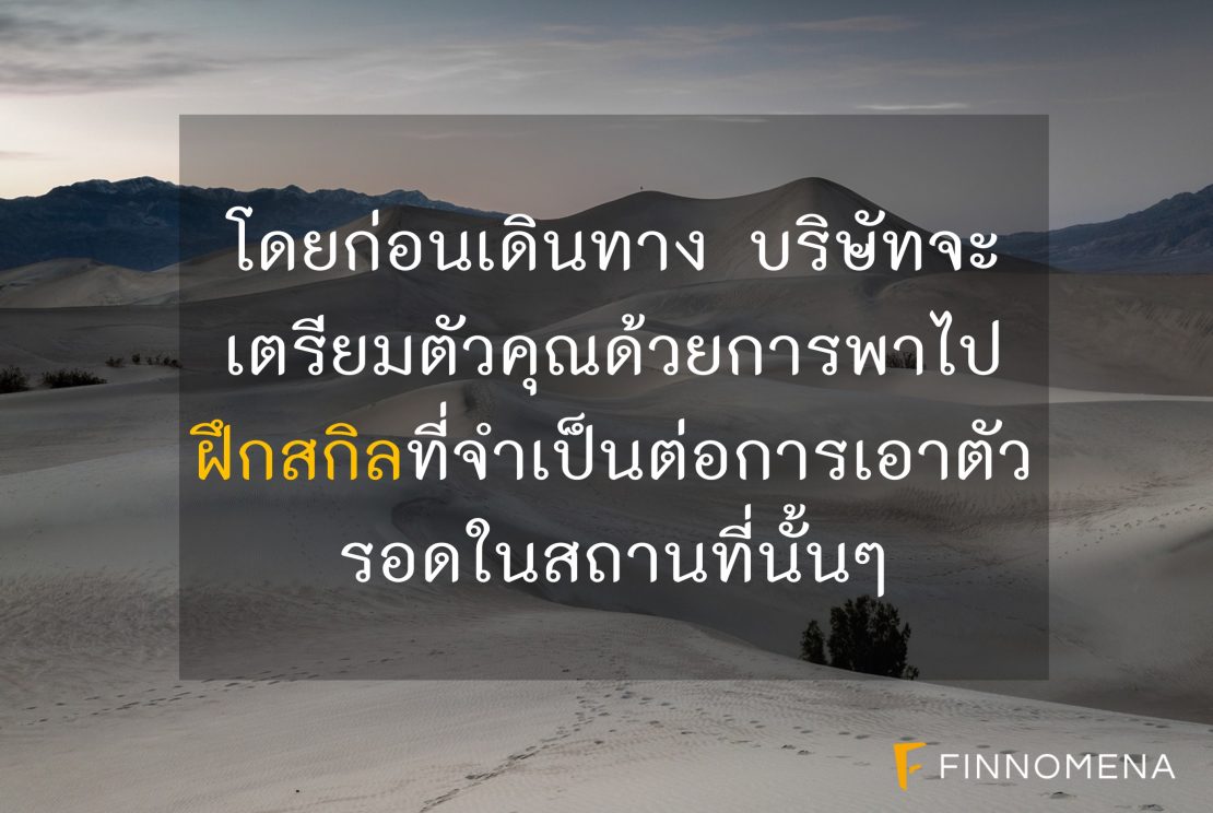 ทั้งนี้ขึ้นอยู่กับสถานที่ที่คุณเลือกจะไป ทางบริษัทจะเตรียมความพร้อมให้คุณด้วยการสอนทักษะการเอาตัวรอดที่จำเป็นในสถานที่นั้นๆ