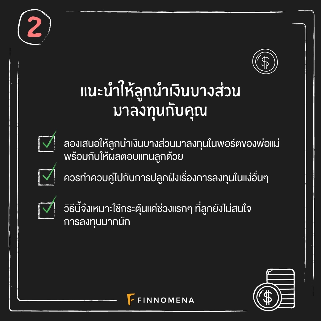 2. แนะนำให้ลูกนำเงินบางส่วนมาลงทุนกับคุณ