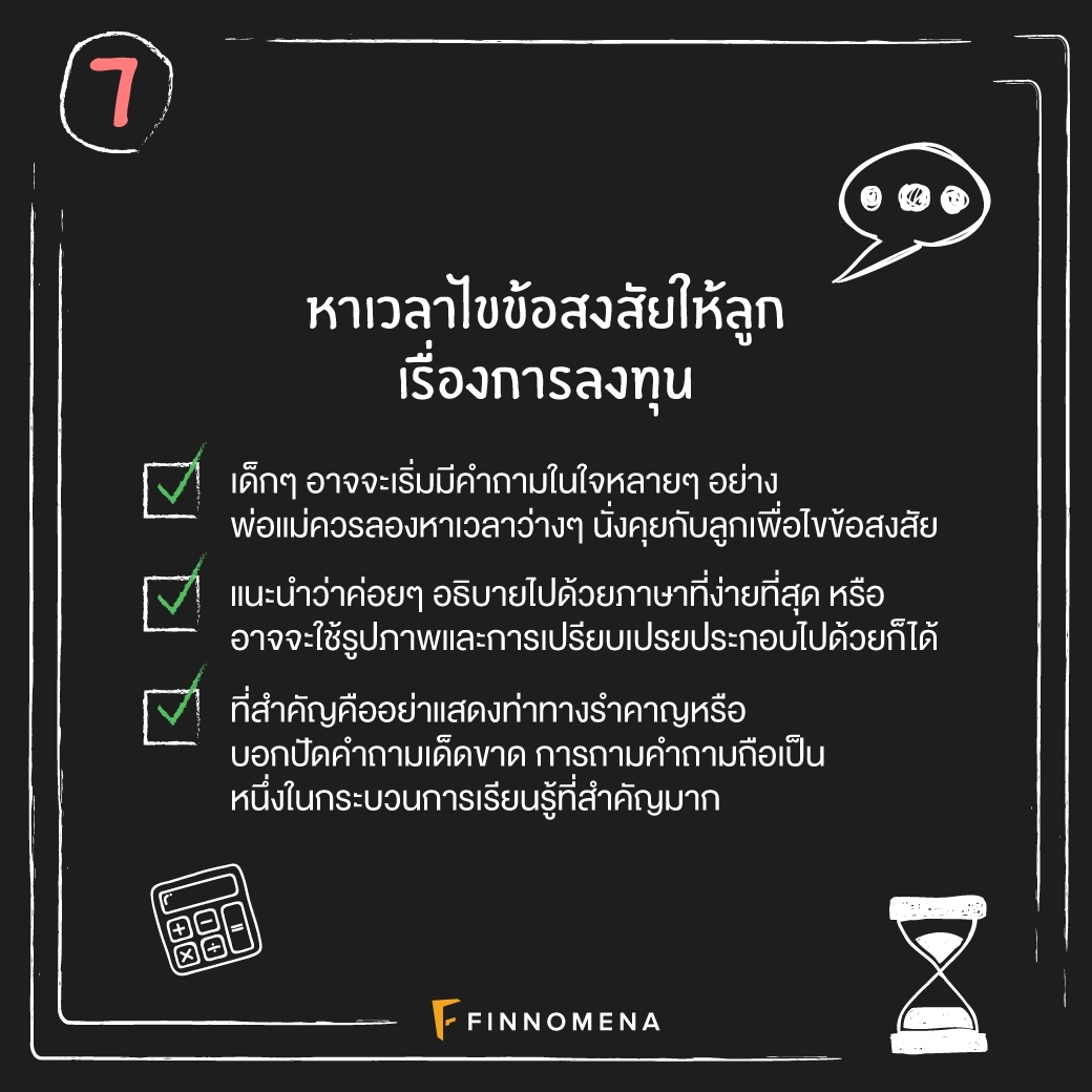 7. หาเวลาไขข้อสงสัยให้ลูกเรื่องการลงทุน