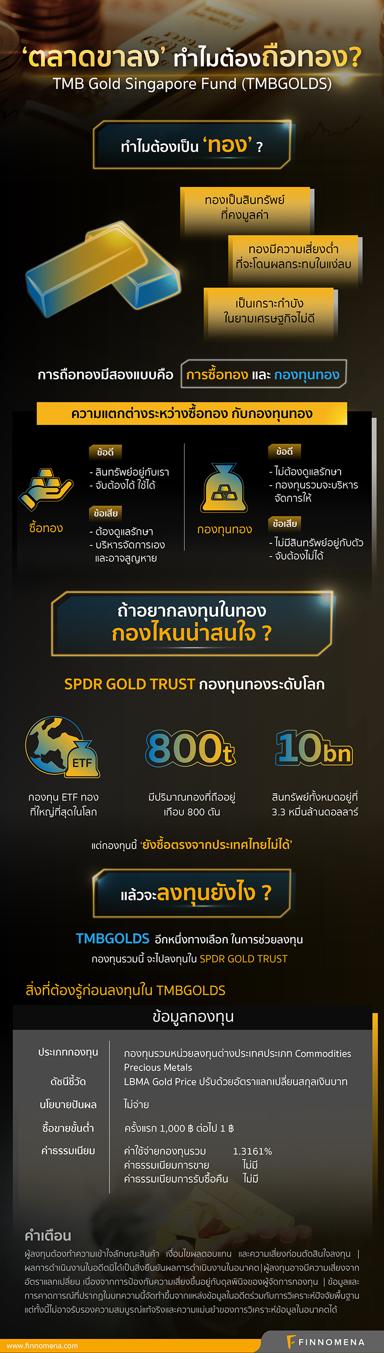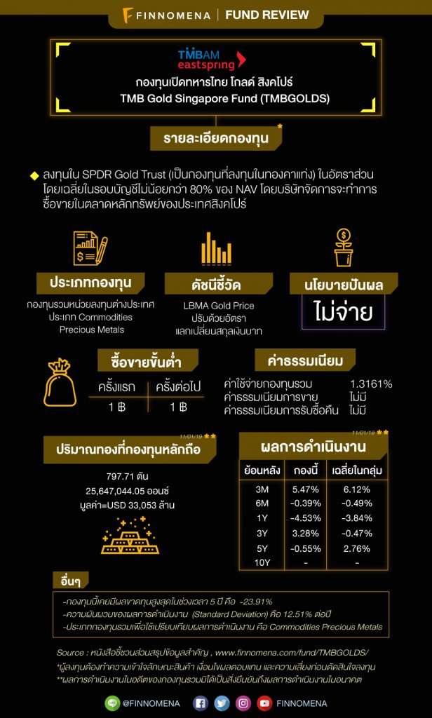 แต่วันนี้เราขอยกมากองทุนหนึ่งก่อน นั่นก็คือ TMBGOLDS (กองทุนเปิดทหารไทย โกลด์ สิงคโปร์) ซึ่งบริหารโดย บลจ.ทหารไทย
