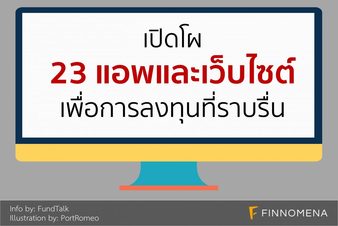 ทุกวันนี้มีแอพและเว็บไซต์มากมายที่ช่วยเราตัดสินใจเรื่องการลงทุน และนี่คือ 23 ขุมทรัพย์ที่อยากเอามานำเสนออีกครั้ง ลองเอาไปใช้กันดูครับ