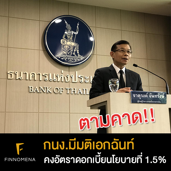 กนง.มีมติเอกฉันท์คงอัตราดอกเบี้ยนโยบายที่ 1.5% ตามตลาดคาด ปรับจีดีพี ศก.ไทยโต 3.4%