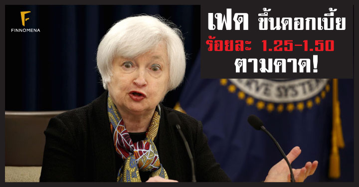 ธนาคารกลางสหรัฐฯ ประกาศขึ้นอัตราดอกเบี้ยนโยบาย 25 bps สู่ร้อยละ 1.25-1.50 ที่คะแนน 7 ต่อ 2 เสียง
