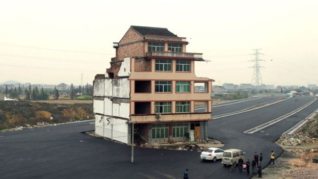 - ล่าสุดเจ้าของบ้านยอมให้เจ้าหน้าที่รื้อถอนบ้านหลังนี้ทิ้งแล้ว หลังจากตั้งกีดขวางการสัญจรบนถนนสายนี้มาเป็นเวลานานถึง 14 ปี โดยอ้างว่าเงินชดเชยค่าเวนคืนที่ดินไม่สมน้ำสมเนื้อ แต่วันนี้เจ้าของบ้านยอมรับเงินชดเชยแล้วที่ประมาณ 2.7 ล้านหยวน หรือราว 13.59 ล้านบาท