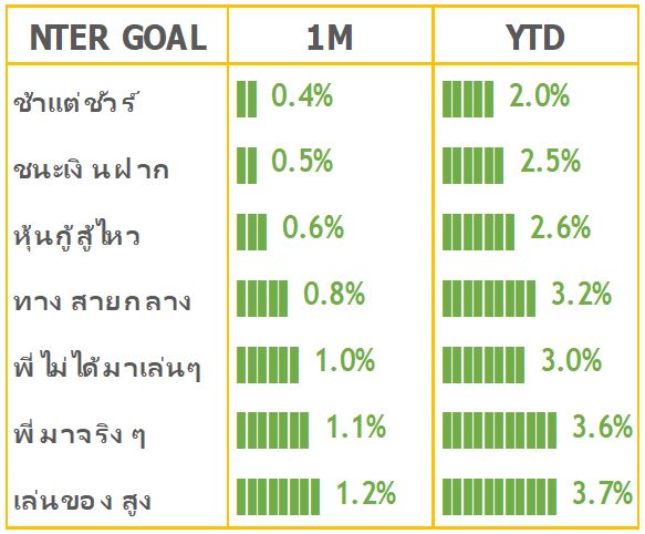 ในเดือนที่หุ้นแกว่งไปมาเช่นนี้ ดัชนีหุ้นไทยไม่ไปไหน เป็นช่วงเวลาให้กองทุนแสดงศักยภาพในการหา Alpha ได้ดี ซึ่ง BTP ทำได้ 3.6% สูงกว่าดัชนี SET ที่ 0.8%