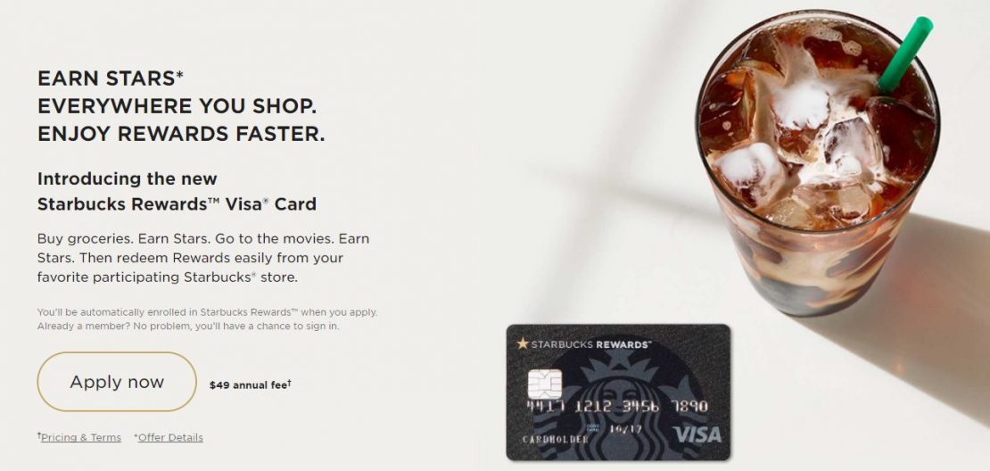 สตาร์บัคส์ จับมืออกับ JP Morgan Chase และ Visa เปิดตัวบัตรเครดิต Starbucks โดยมีค่าธรรมเนียมรายปี 49 เหรียญสหรัฐฯ และผู้สมัครจะได้รับเครื่องดื่มและอาหารจาก สตาร์บัคส์ ฟรี!