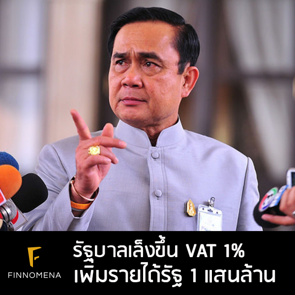 รัฐบาลเล็งขึ้น VAT 1% แลกกับรายได้ประเทศที่เพิ่มขึ้นกว่าแสนล้านบาท วอนประชาชนเข้าใจ