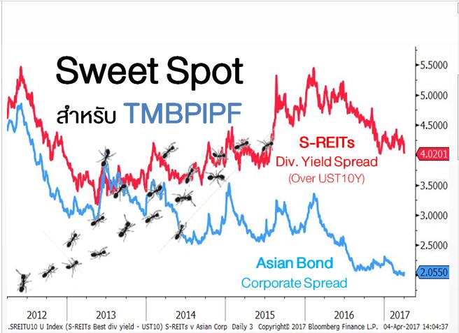 - “Sweet Spot” for Property Income Plus ภาวะปัจจุบัน “เอื้อ” ต่อสินทรัพย์ประเภทนี้… fund flows ไหลเข้ามาซื้อตราสารหนี้ ดันราคาขึ้น บีบ spreads แคบลง เม็ดเงินบางส่วนจึงอาจเริ่ม “หมุน” ออกจากตราสารหนี้ และเคลื่อนเข้าไปยังสินทรัพย์ที่เน้น “ยีลด์” อื่นๆอย่างเช่น กองทุนอสังหาฯ/โครงสร้างพื้นฐาน และ REITs