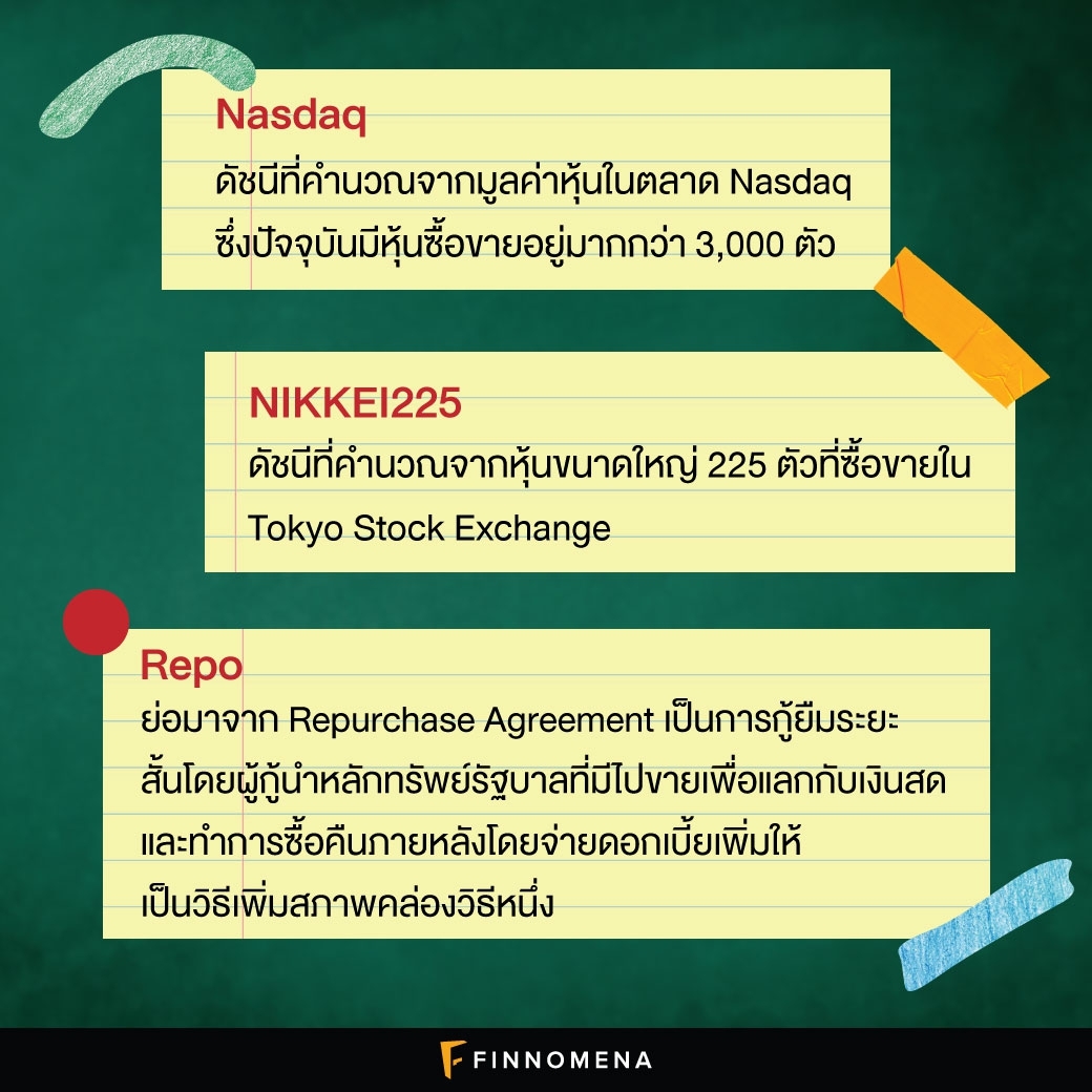 สำหรับมือใหม่ที่อาจจะยังไม่คุ้นเคยกับตัวเลขทางเศรษฐกิจ ไม่รู้ว่าตัวย่อต่าง ๆ หมายความว่าอะไร วันนี้ผมเลยรวบรวมศัพท์ทางการเงินน่ารู้มาให้ พร้อมความหมายแบบสั้น ๆ ศัพท์พวกนี้แรก ๆ อาจจะดูเยอะ แต่พอเจอบ่อย ๆ รับรองคุ้นเคยจำได้แน่นอนครับ