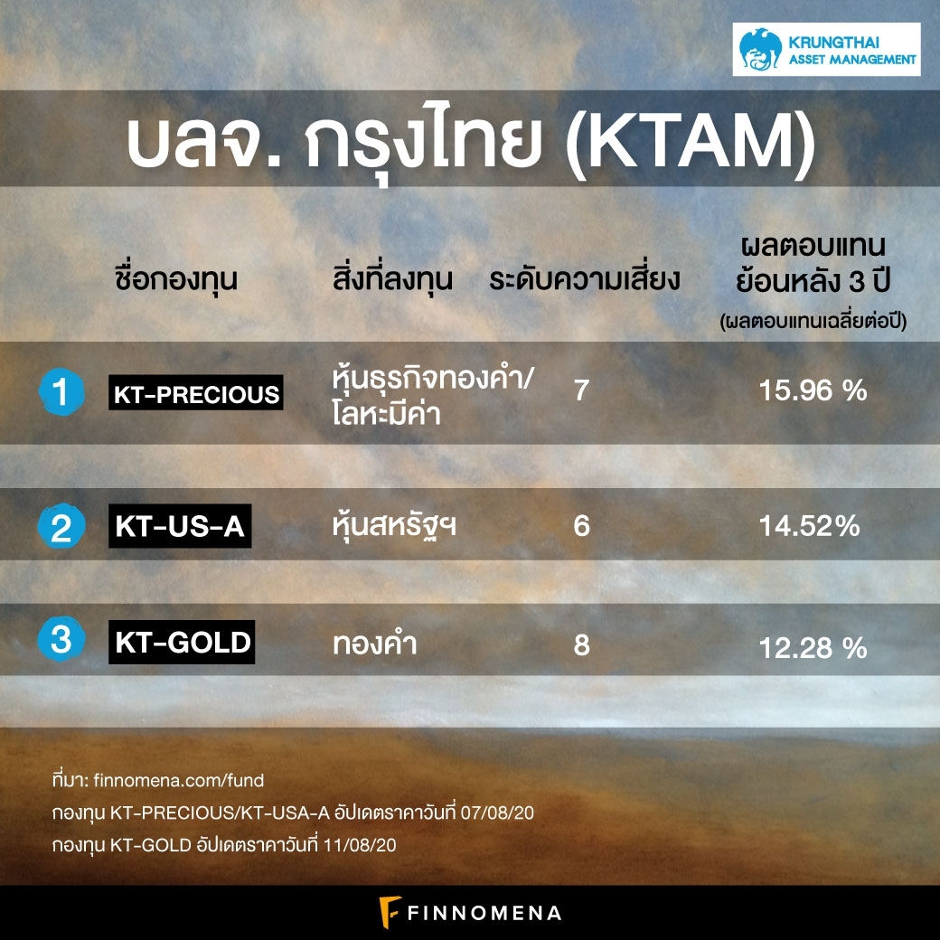 อันดับ 1 KT-PRECIOUS (ระดับความเสี่ยง: 7) ลงทุนในหุ้นธุรกิจทองคำ/โลหะมีค่า ผลตอบแทนย้อนหลัง 15.96% ต่อปี