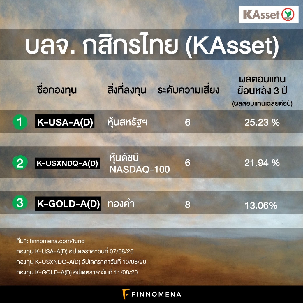 อันดับ 3 K-GOLD-A(D) (ระดับความเสี่ยง: 8) ลงทุนในหุ้นภูมิภาคเอเชียแปซิฟิค ผลตอบแทนย้อนหลัง 13.06% ต่อปี