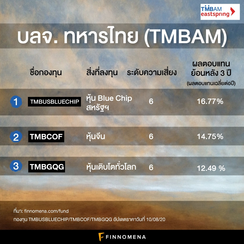 อันดับ 1 TMBUSBLUECHIP (ระดับความเสี่ยง: 6) ลงทุนในหุ้น Blue Chip สหรัฐฯ ผลตอบแทนย้อนหลัง 16.77% ต่อปี