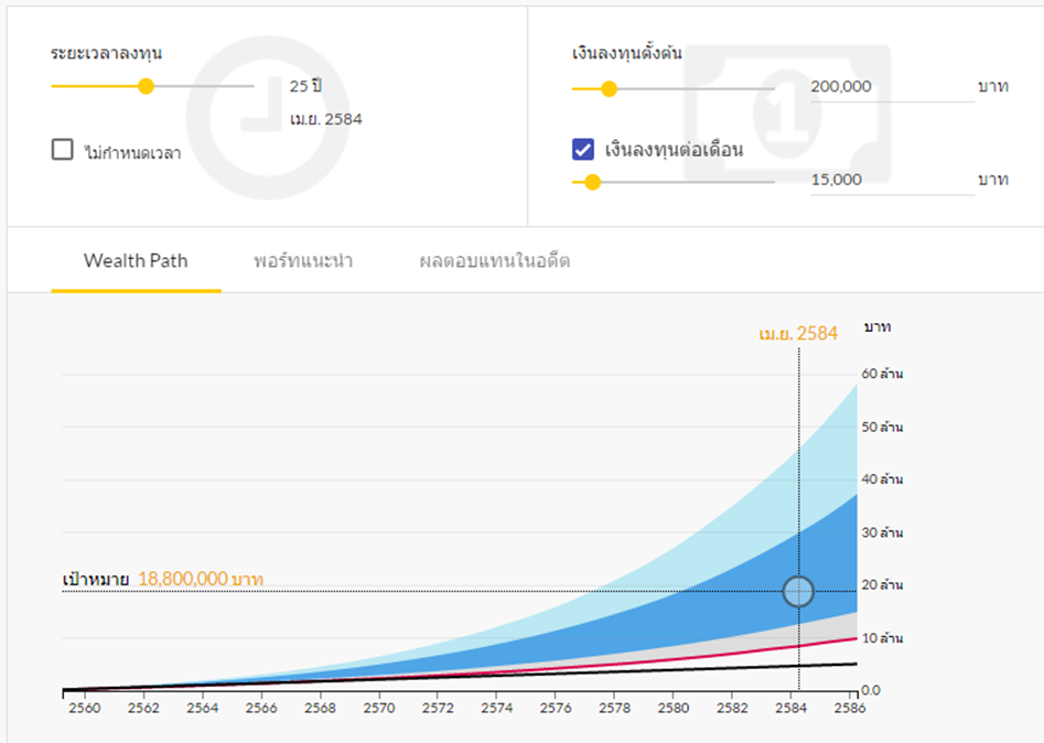 - เป้าหมายคือ 18 ล้านบาท ณ วันเกษียณ (อีก 25 ปี)