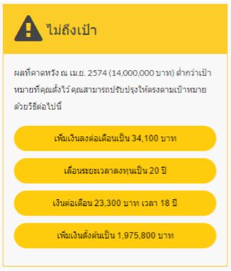 - เป้าหมายคือ 14 ล้านบาท ณ วันเกษียณ (อีก 15 ปี)