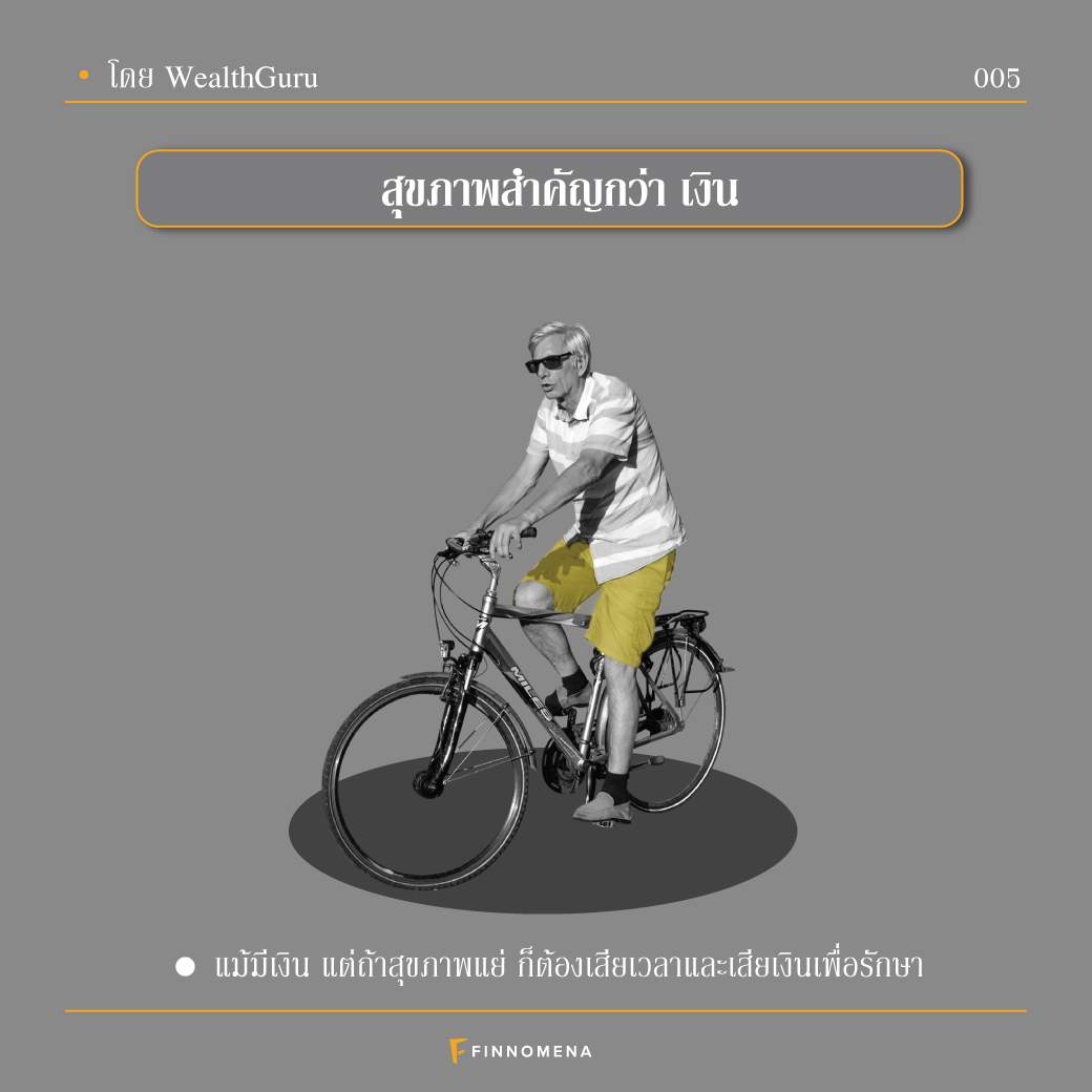 แม้มีเงิน แต่ถ้าสุขภาพหลังเกษียณแย่ ไม่สบายบ่อย มีโรคประจำเยอะ ทำให้ต้องเสียเวลาและเสียเงินเพื่อรักษา
