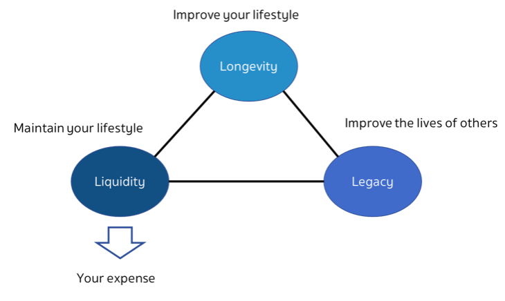 มุ่งไปสู่เป้าหมายหลัก คือ การเกษียณอายุได้ยืนยาวนาน โดยเฉลี่ยแล้วคนอายุยืนขึ้นทุกปี เอกสาร World Economic Forum (WEF) กล่าวว่า นับจากกลางศตวรรษที่ 20 ทุก ๆ 5 ปี อายุโดยเฉลี่ยของคนเราจะเพิ่ม 1 ปี ทำให้ตั้งแต่ปี 2000 อายุขัยคาดหวังจะเพิ่มถึง 100 ปี