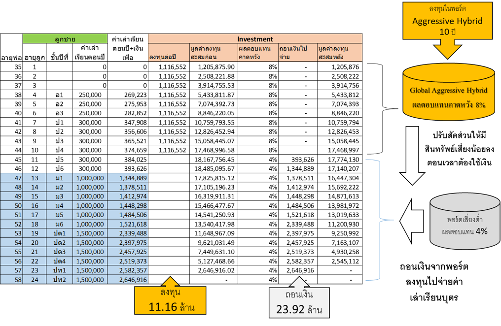 เฉพาะค่าใช้จ่ายการศึกษา ม.1 – ปริญญาโท จะอยู่ที่ 15 ล้าน แต่ถ้ารวมเงินเฟ้อ อยู่ที่ 23.5 ล้าน