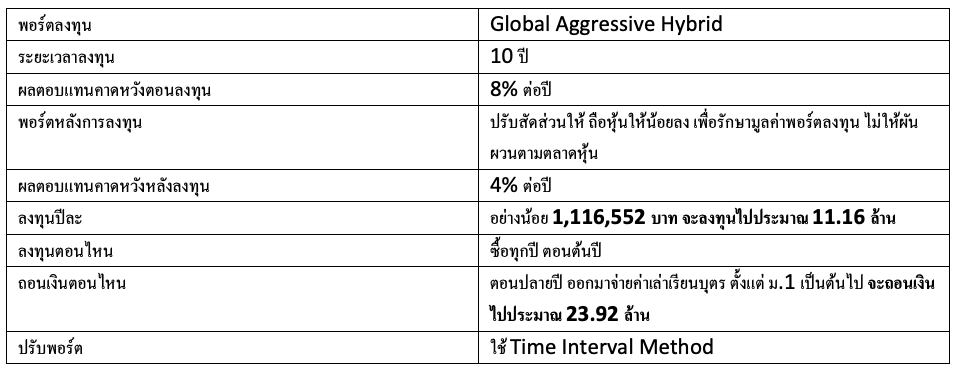 ต้องการลงทุน 10 ปี เพื่อเตรียมเงินเพื่อจ่ายค่าเทอมตั้งแต่ ม.1 – ปริญญาโท