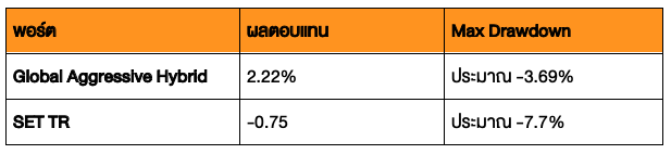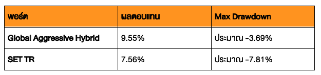 ในระยะ 9 เดือนที่ผ่านมา ผลตอบแทนของพอร์ต Global Aggressive Hybrid อยู่ที่ 9.55% ซึ่งใกล้เคียงกับผลตอบแทนคาดหวังตั้งไว้ที่ 8%