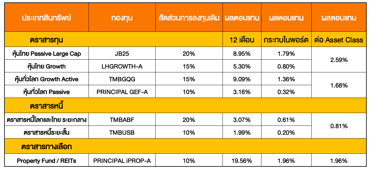แต่หลังจากพูดคุยกับผู้รับคำปรึกษาในเชิงลึกในเป้าหมายที่แท้จริง ก็อาจจะปรับสัดส่วนของการลงทุน ถึงอย่างนั้น แนวคิดหลักของพอร์ตลงทุนยังเหมือนเดิมครับ