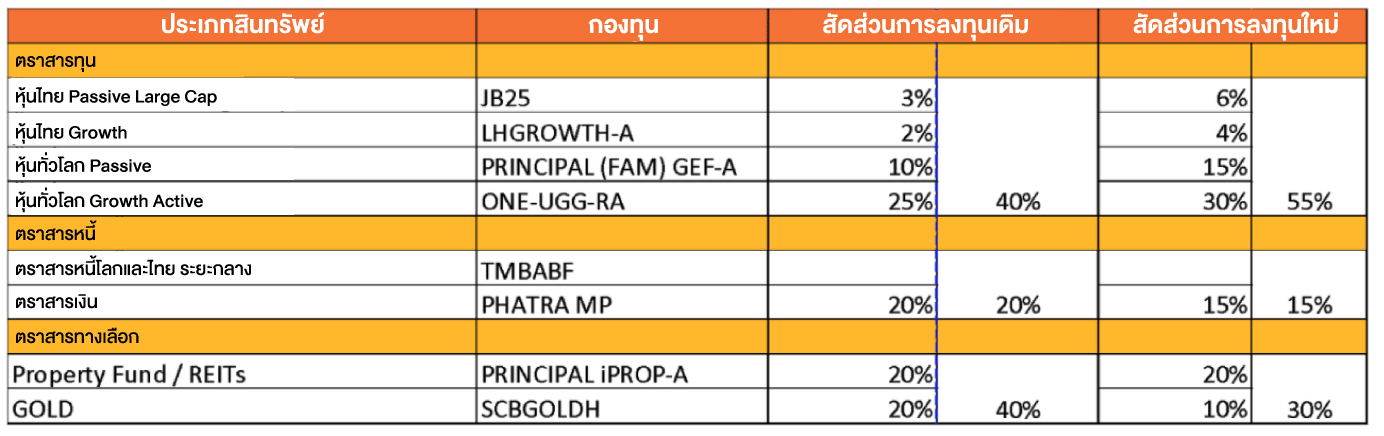2. ลดสัดส่วนสินทรัพย์ทางเลือกลงจาก 40% เป็น 30%